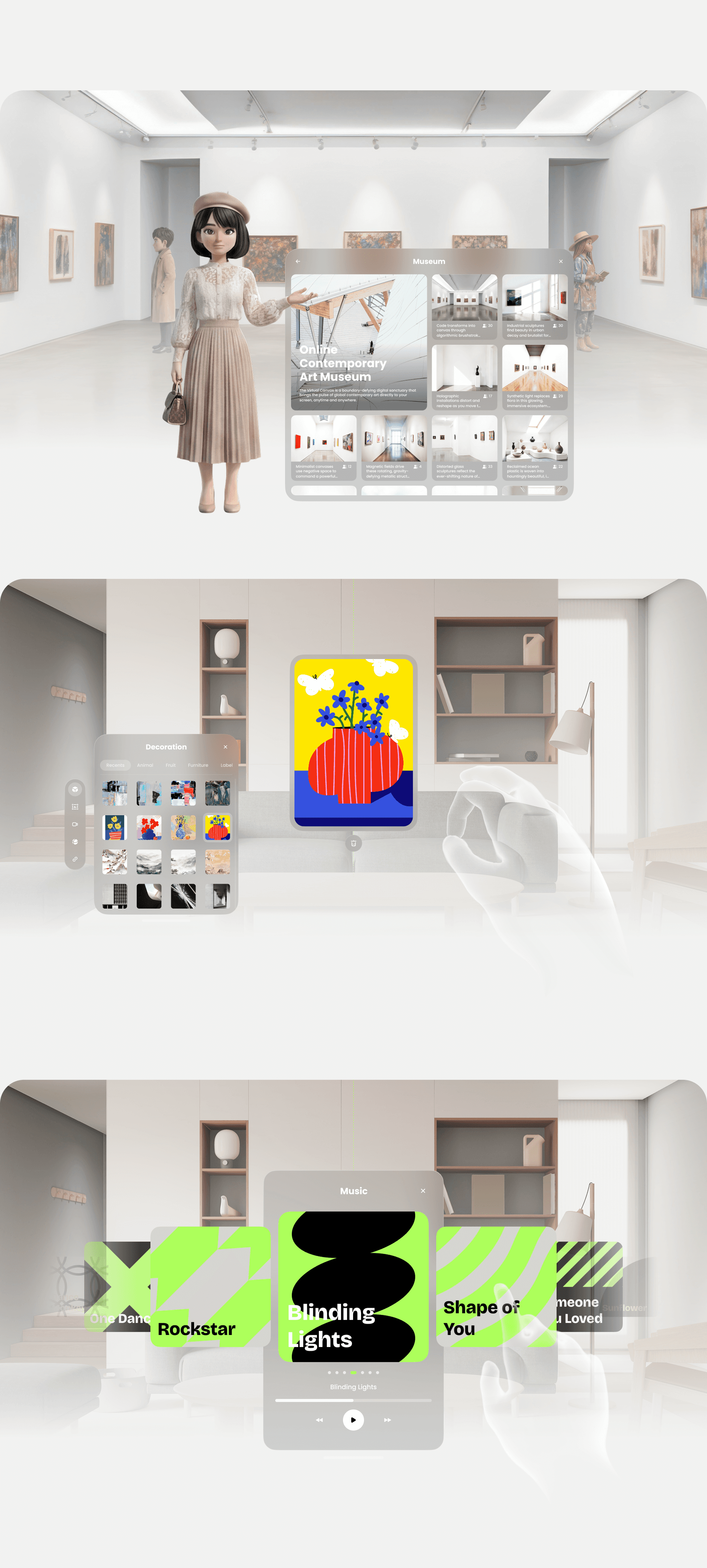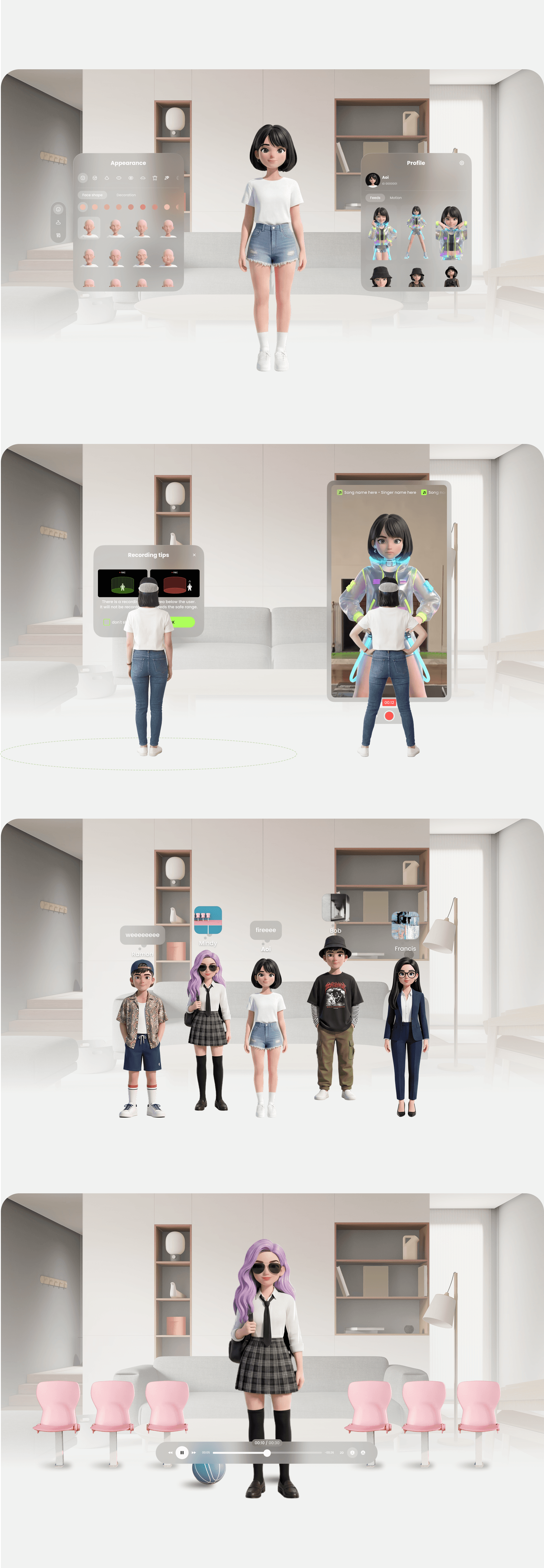 Express your true self—or your wildest alter-ego. Our deep character customizer allows you to edit textures, silhouettes, and outfits with granular detail, ensuring your presence in the spatial world is as unique as your DNA. Your space, your rules. Drag and drop virtual furniture and interactive art into your physical room or build a "Pocket Dimension" from scratch. Invite friends over for a virtual hangout where they can actually "sit" on your couch.
