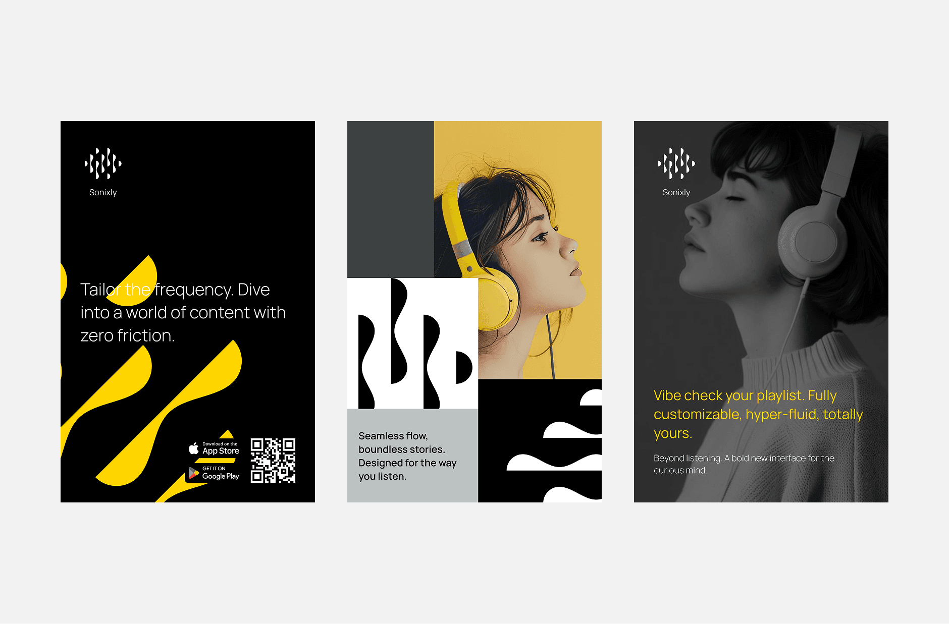 This design breaks away from traditional layouts with a high-contrast black and yellow palette. It’s a clean, digital-first space that moves beyond a simple player—it’s a seamless, customizable interface built for the next generation of sound.